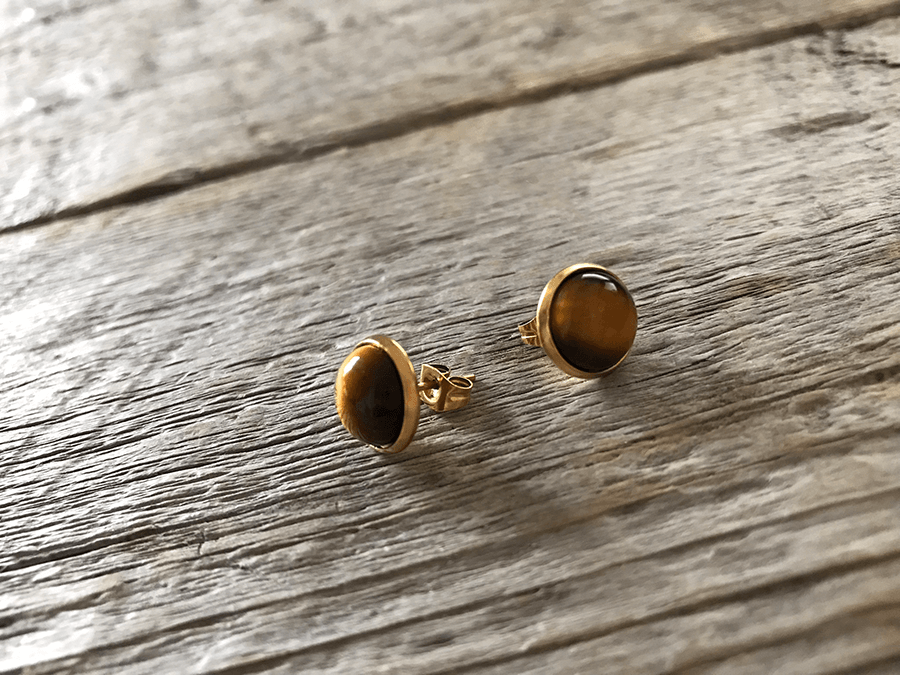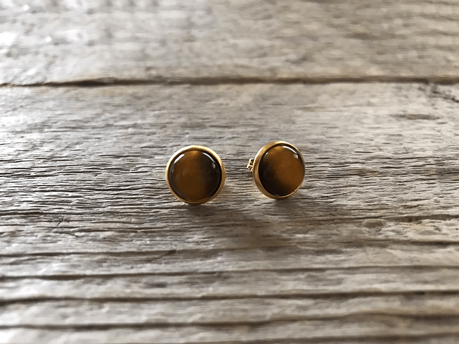 Voici les boucles d'oreilles sur clou TIGRE. Elles sont faites avec un clou d'oreilles en acier inoxydable couleur or et de superbes pierres d'Oeil de tigre brunes. Elles sont tellement parfaites et faciles à agencer, vous ne pourrez plus vous en passer!